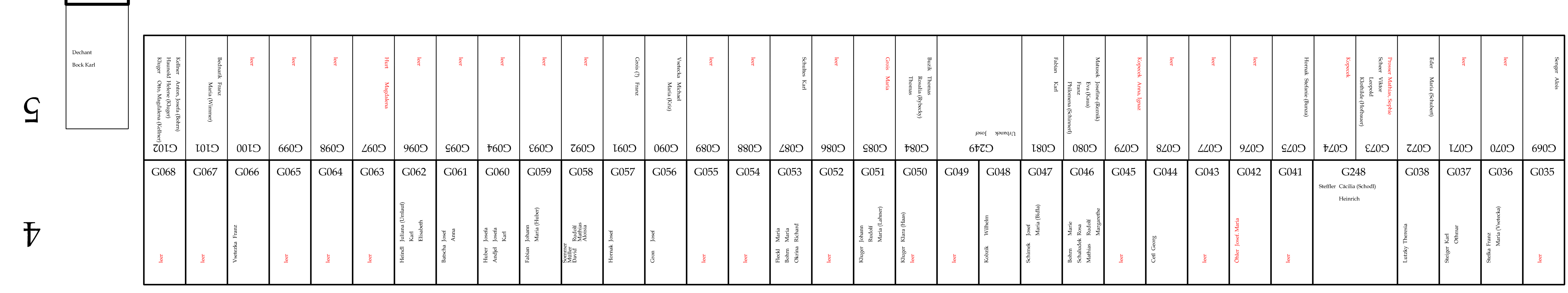 Da im Originalplan die Beschreibung der Gräber nach der Richtung der Grabsteine orientiert ist, wird hier sowohl die Normaldarstellung als auch eine um 180° gedrehte Darstellung zum Download angeboten.
