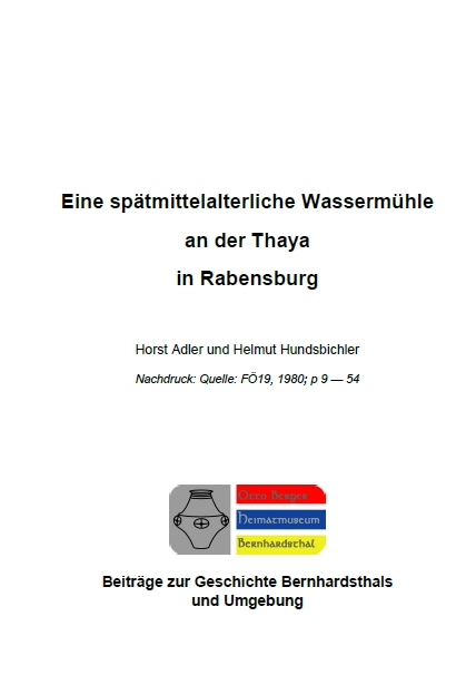 Eine spätmittelalterliche Wassermühle an der Thaya in Rabensburg, Nachdruck: Quelle: FÖ19, 1980; p 9 — 54 Überarbeitung: Friedel Stratjel, 2018 (Version 20181130) BV145/2018 |