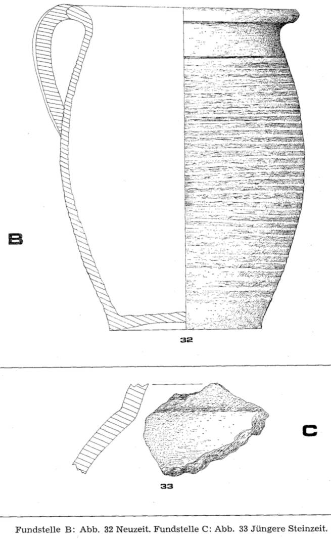 Wenn nicht anders angegeben, sind die Tongefäße freihändig geformt. Auf den Tafeln sind alle Objekte im Maßstab 1 :2 wiedergegeben. Die Bestimmung der neuzeitlichen Fundgegenstände wird entgegenkommenderweise Herrn Erik Szameit verdankt.